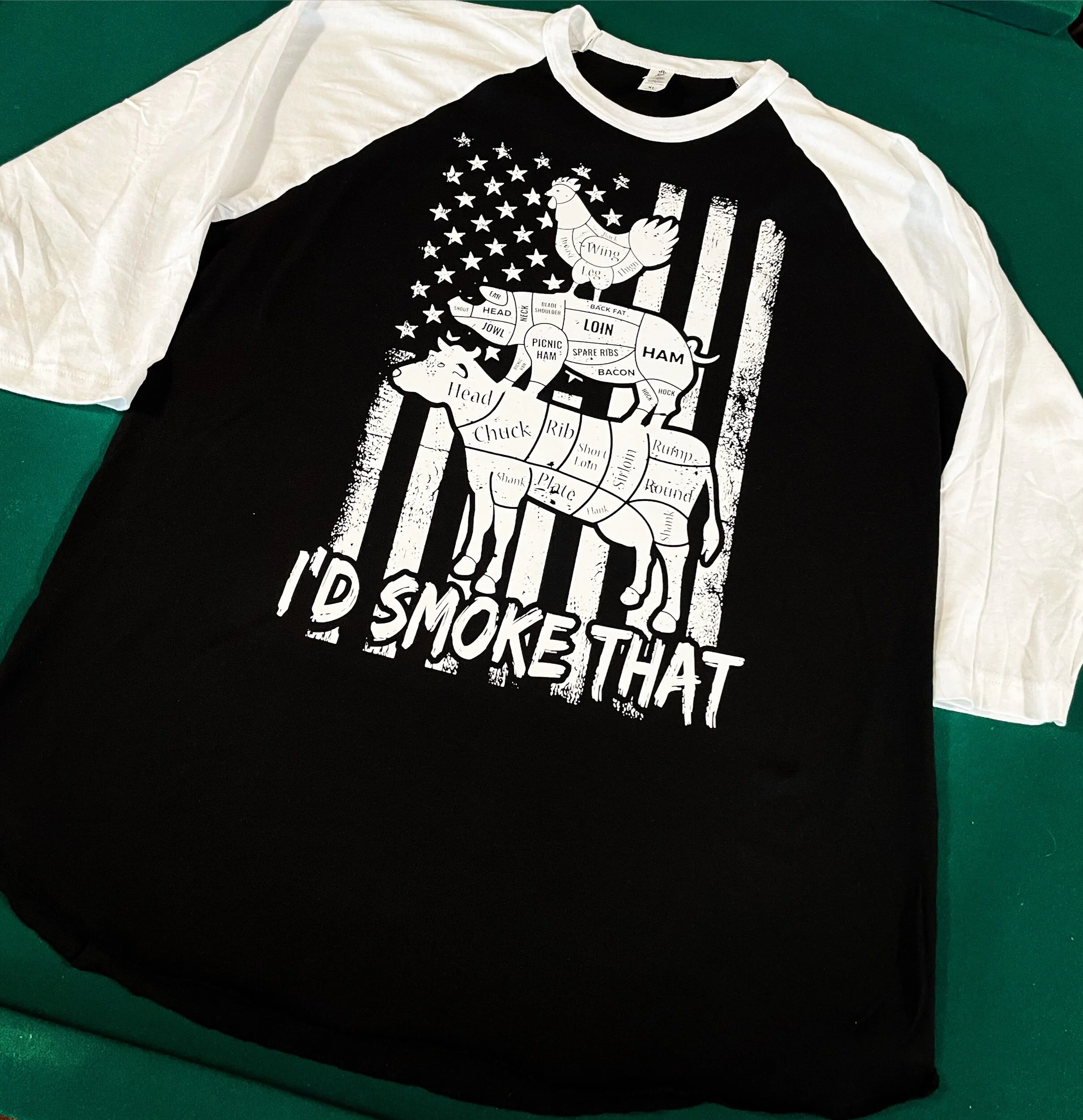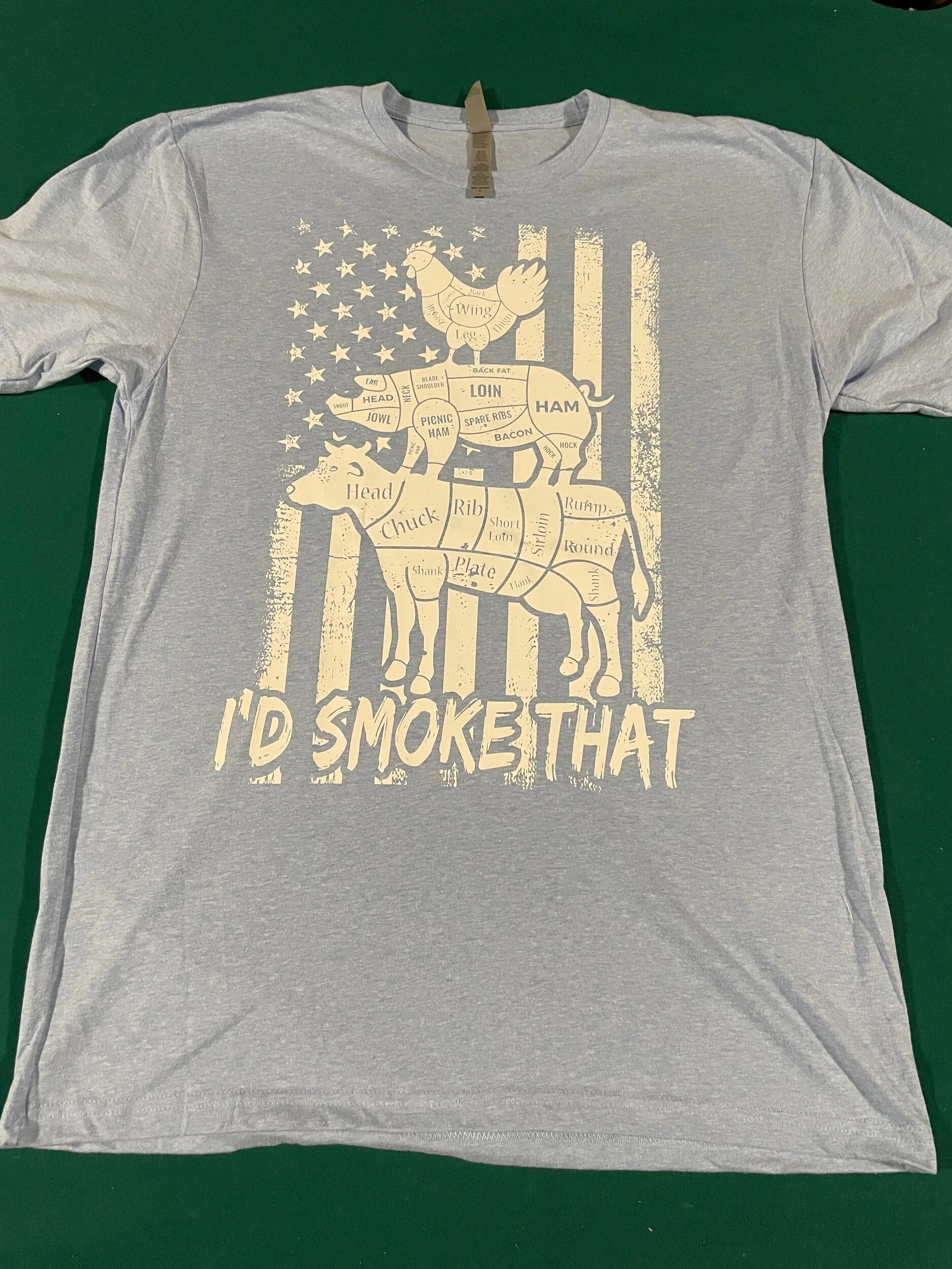 Help Support Small Businesses By Buying One Of Our Products. We also offer custom work. Be sure to email us and we can get your idea rolling. Categories: All Shirts Shop All | Shirts | $25.00 Thread & Tones hat $25.00 Skull Shop Shirt $20.00 Acrylic Patch USA Flag $35.00 By The Machine Biomechanical $20.00 Jeff Does What YouTube design $20.00 Seal of Texas $20.00 I’D Smoke That Short Sleeve $20.00 I’d Smoke That Raglan Shirt $25.00 Swine Cut Hat $25.00 Beef Cut leather patch hat $25.00 Cooking Temp Bamboo Cutting Board $12.00 Monogram bamboo cutting board Sale Price: $30.00 Original Price: $35.00 Sale We The People wood sign $8.00 Texas USA Flag Leather Patch Hat $25.00